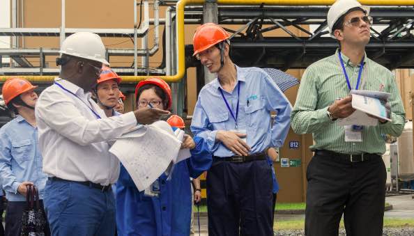 7月5日上午,OPCW視察組和國家代表、省市陪同人員在聽取核查前情況介紹后,共同前往公司生產(chǎn)區(qū)域進(jìn)行了現(xiàn)場核查。視察組一行在察看企業(yè)總平面布置之后,分別對生產(chǎn)裝置、工藝流程等作了詳細(xì)了解,核實了企業(yè)生產(chǎn)經(jīng)營中的相關(guān)記錄、原始臺賬、報表等,公司陪同人員客觀、專業(yè)的回答了核查組提出的各類問題。